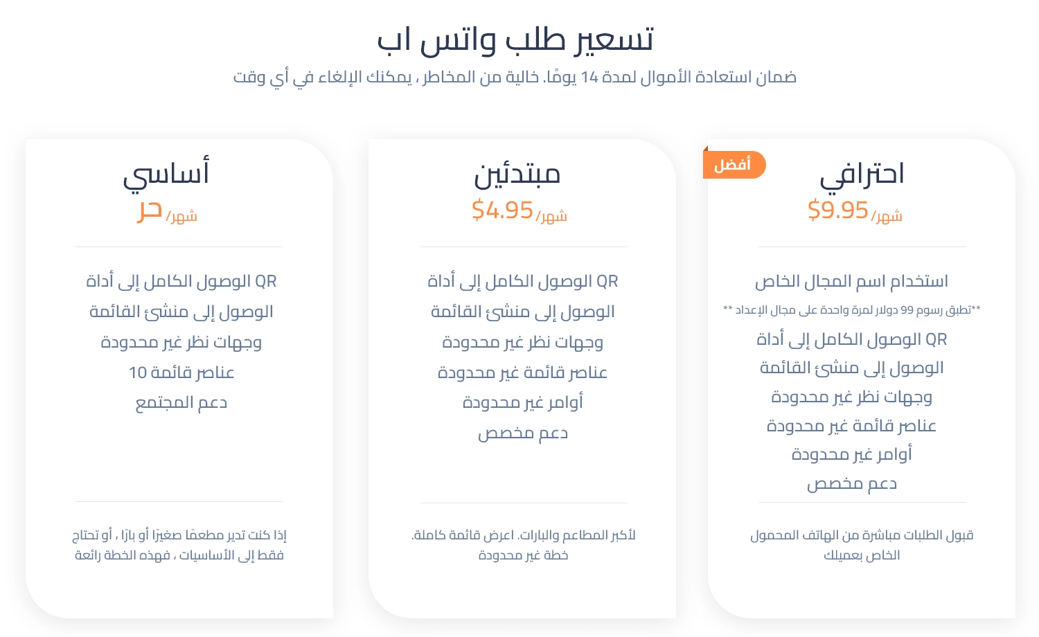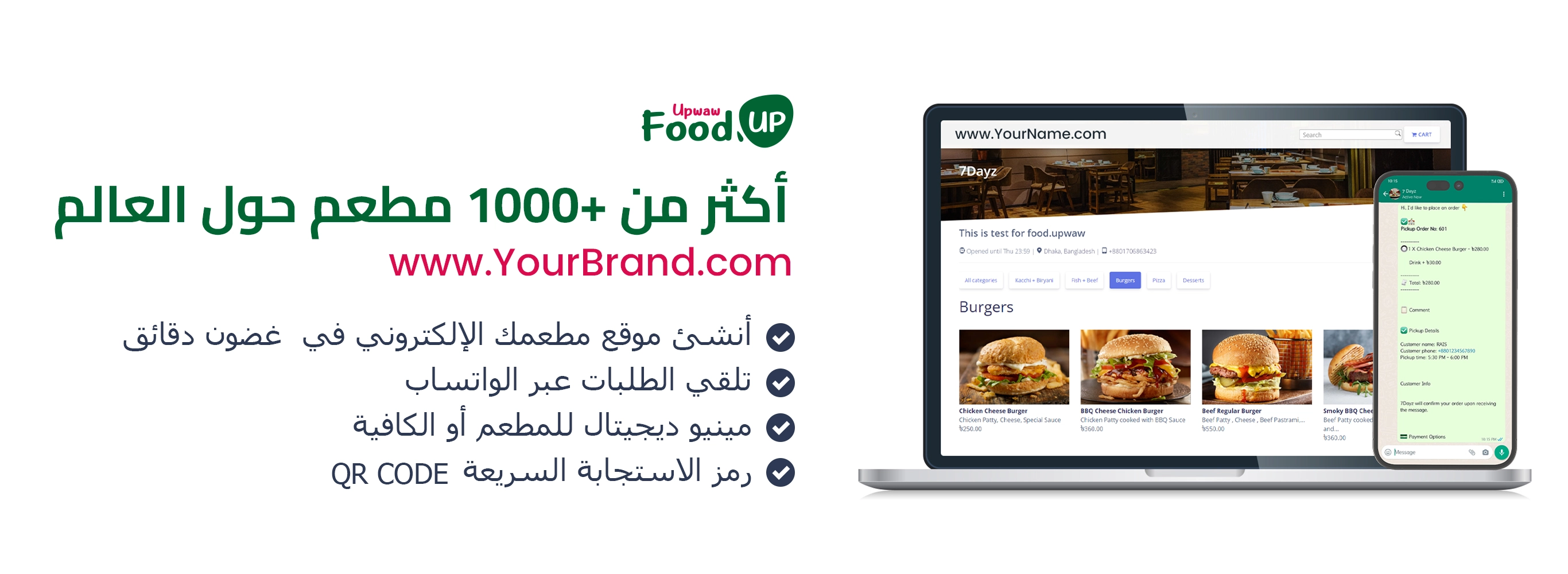 ابدأ الآن وأنشئ موقعًا إلكترونيًا وقائمة رقمية لمطعمك أو بارك ، وشاركها مع عملائك ودعهم يطلبون عبر الهاتف المحمول
