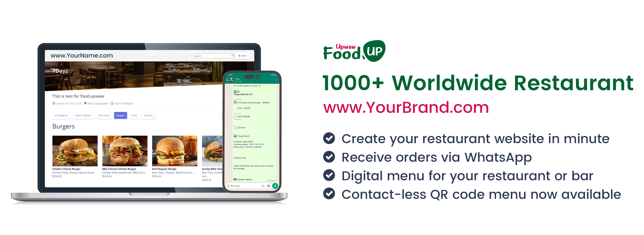 Restaurant business and taking orders has become easier with online platforms. UPWAW provides smarter solutions for restaurant owners, as they can display their menus in their website with customization options. Our main advantage is receiving orders via WhatsApp. Where we integrate WhatsApp into our system so that customers can easily place their orders via WhatsApp